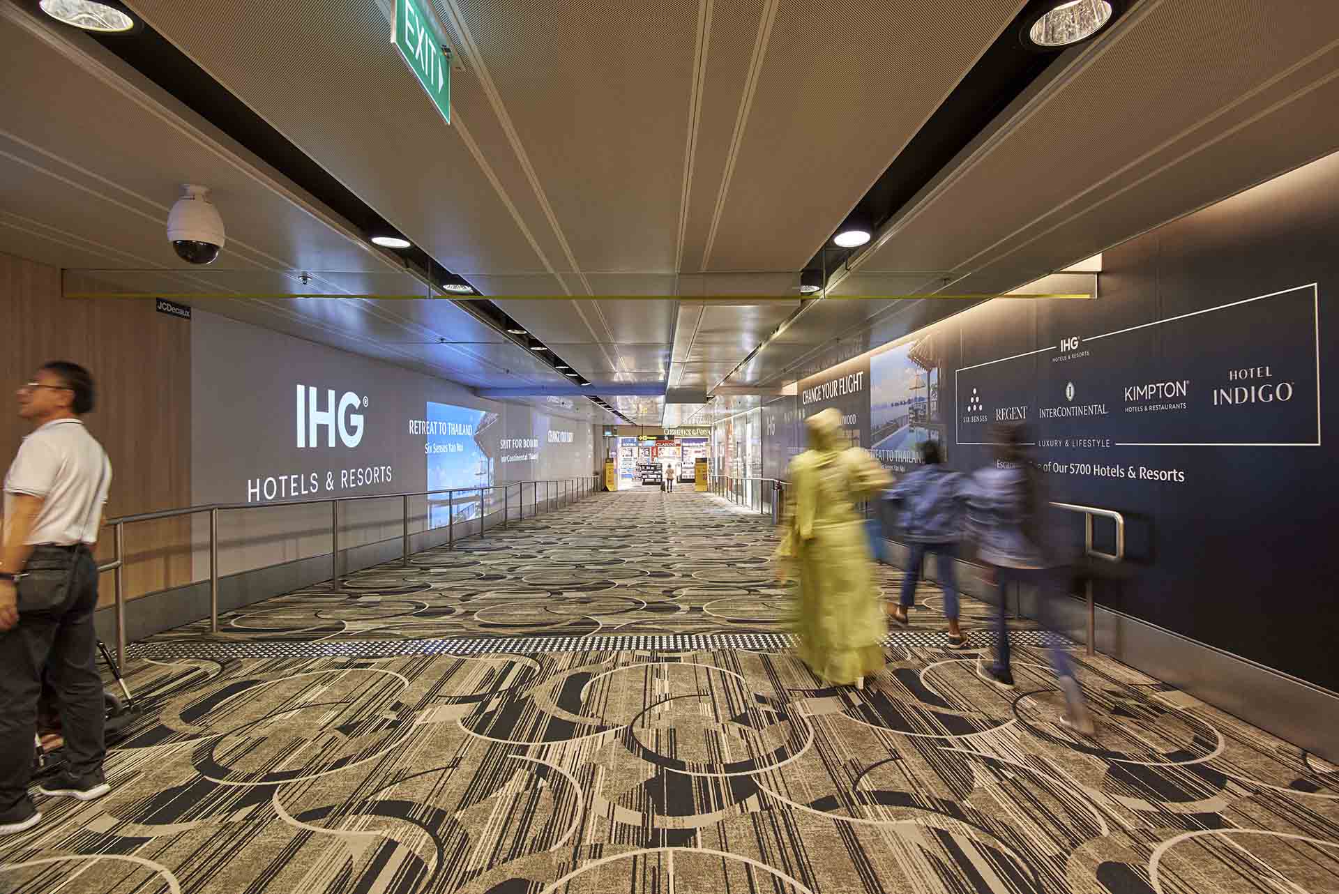 The Immersive Walkway reaches all international passengers arriving in Singapore via Terminal 1 at Changi Airport, Asia Pacific’s most internationally connected air hub. Comprising a 35m long walkway with a wall wrap and video projection on opposite walls, the immersive space along the airport passenger journey allowed IHG to showcase their offerings at diverse worldwide destinations such as Seychelles, Hollywood and Taipei. This included the use of 4K high-resolution video to captivate a receptive audience possibly thinking of future getaways as they were still completing their travel at the airport, leading to higher message and brand recall.