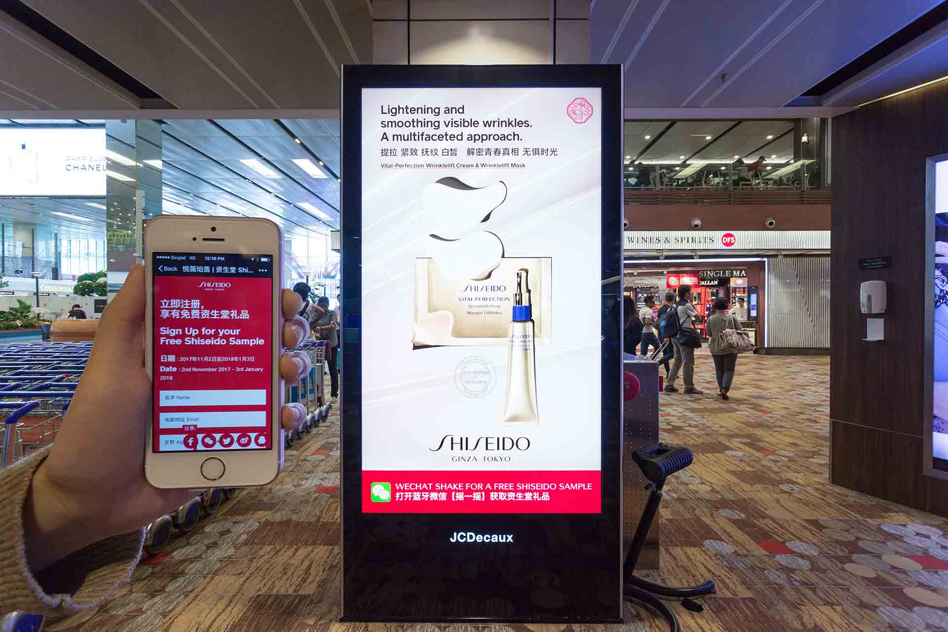 The digital screens were fitted with JCDecaux’s beacon devices. A message displayed on the screen encouraged passengers to redeem a free Shiseido sample using WeChat Shake by simply shaking their mobile devices near the digital screens.